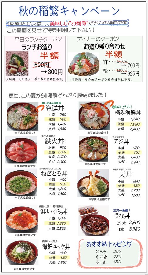 その日だけの特別なお食事の時間を、ぜひ稲繁でお過ごしくださいませ。