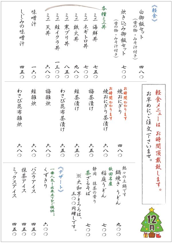 その他にも多種メニューがございます。 ※表記は全て税込みです。