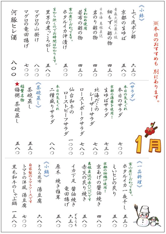 その日の仕入れから美味しいものを