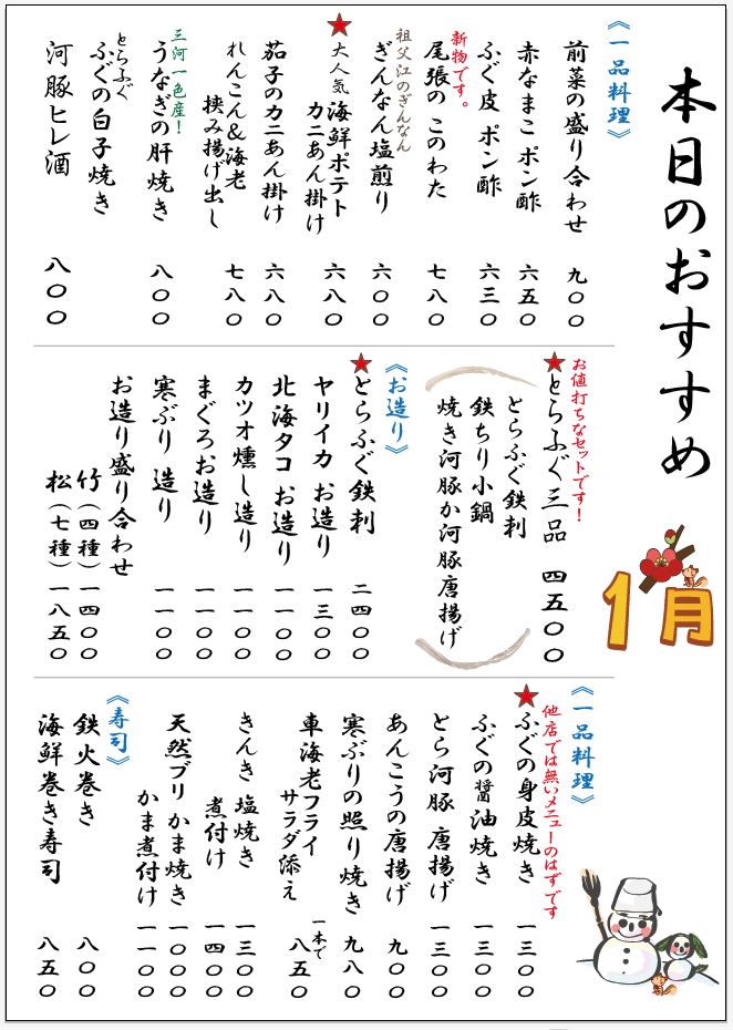 ※とらふぐ鉄刺、和牛料理、うな丼 を確約!