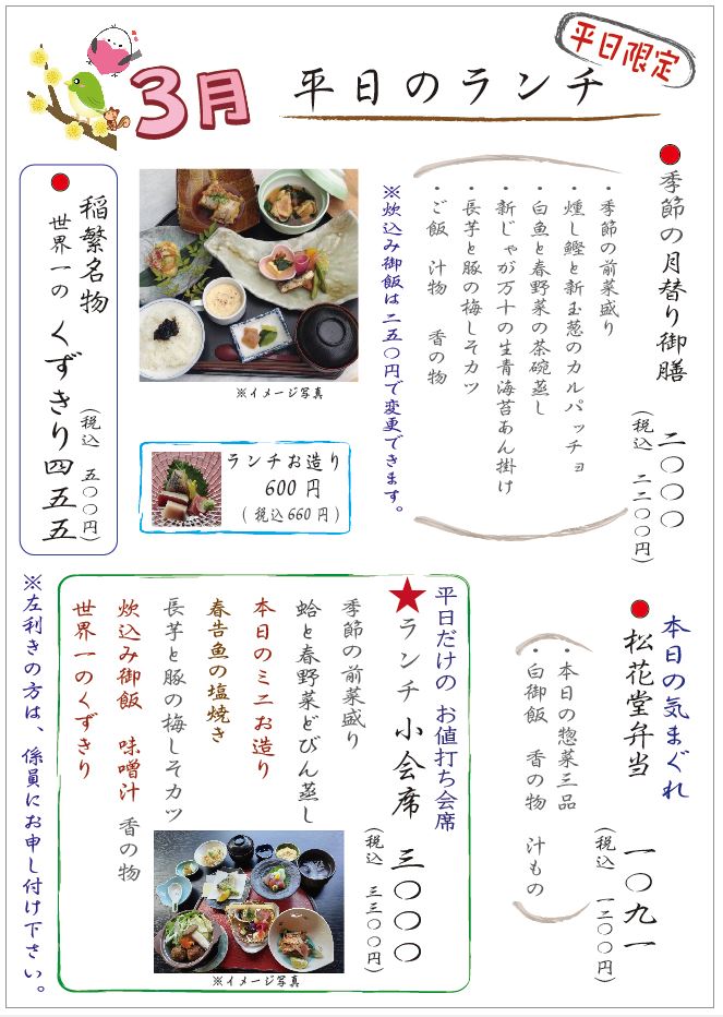 旬の食材を贅沢に味わう旬の食材を使ったこだわりの月替り御膳。一品一品、味も見た目も丁寧につくりあげた贅沢なメニューです。ランチはさらに価格もおトクに!当店の一番人気です。
